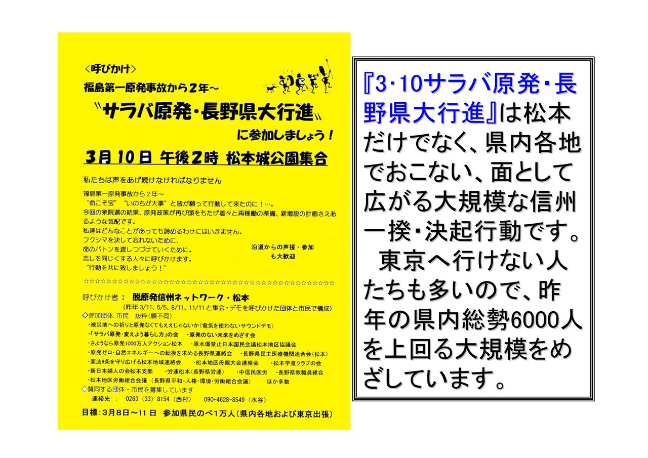 つながろうフクシマ!ひろげよう脱原発!3.10長野行動(長野市・南千歳公園13:00~)