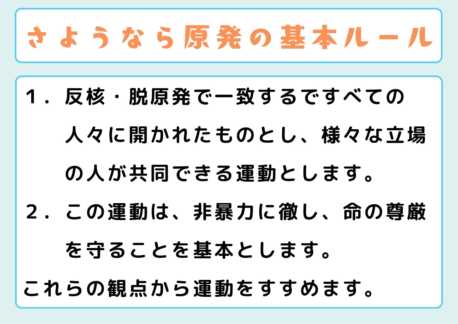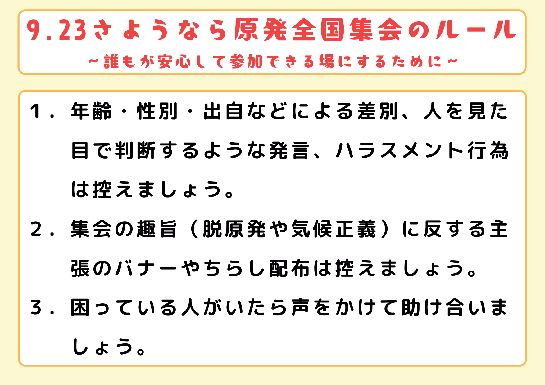 詳しくはこちら(9.23さようなら原発全国集会のルール、さようなら原発の基本ルール)