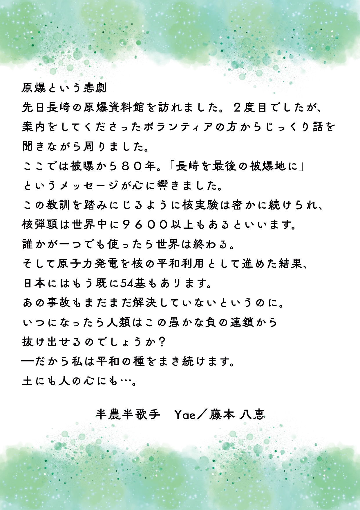 Yae(ヤエ)| 半農半歌手/シンガーソングライター