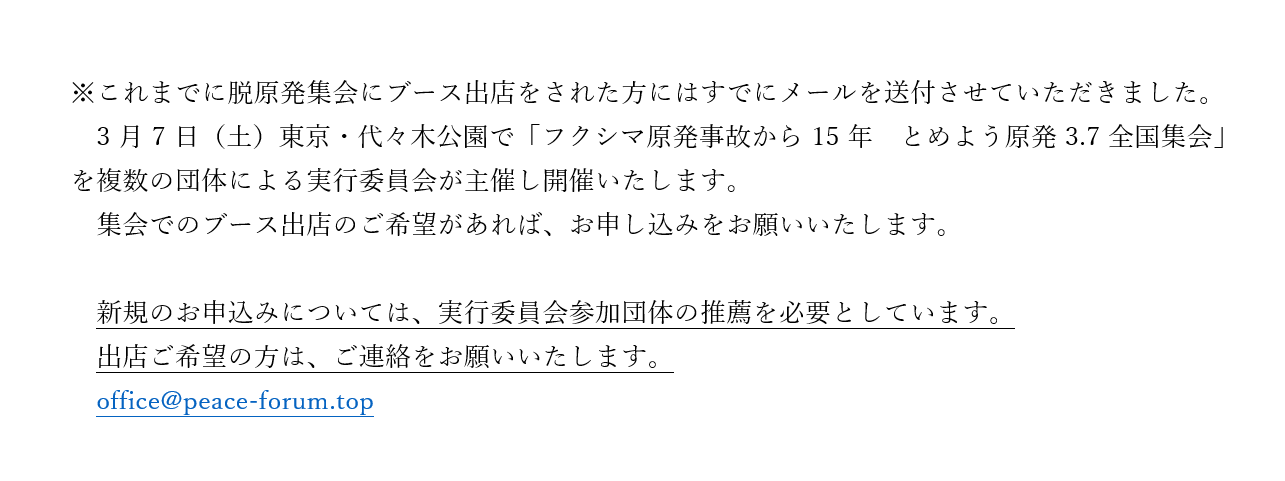 フクシマ原発事故から15年 とめよう原発3.7全国集会―持続可能で平和な社会を―