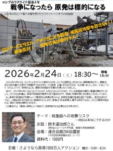 2/24 集会「ロシアのウクライナ侵攻4年 戦争になったら原発は標的になる」開催のご案内