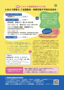 フクシマ原発事故から15年 とめよう原発3.7全国集会―持続可能で平和な社会を―